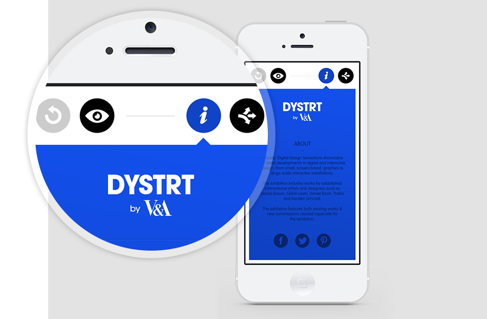 To create an interactive & playful iPhone app to support & promote the digital art exhibition by the Victoria & Albert Museum.