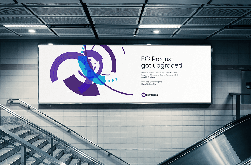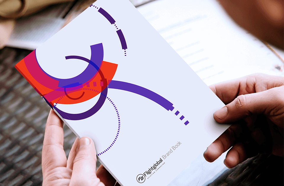 The orange, blue and grey accent colours reflect one of the three flagship products Flightglobal provides.